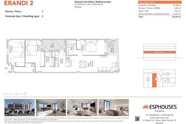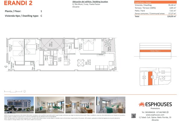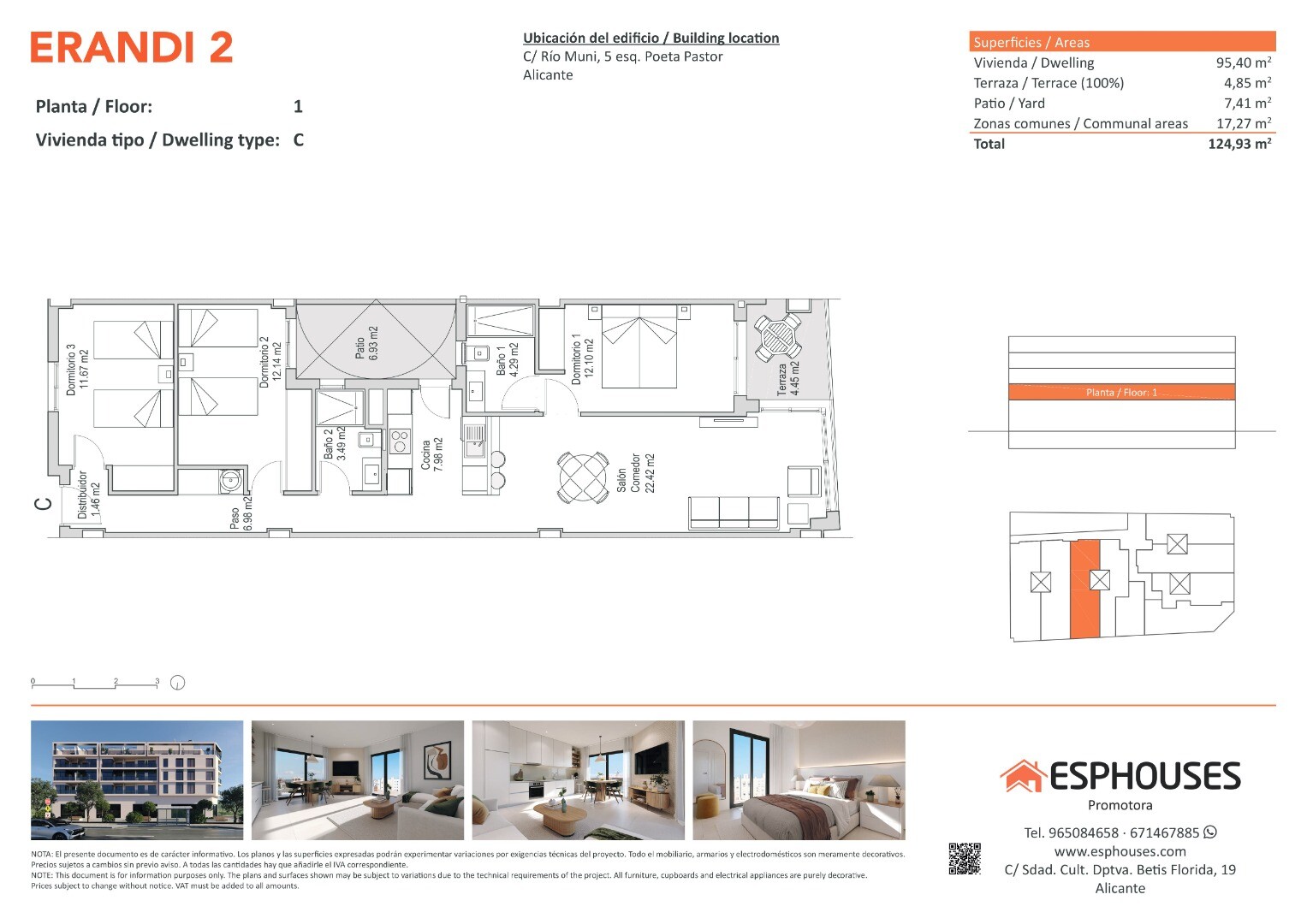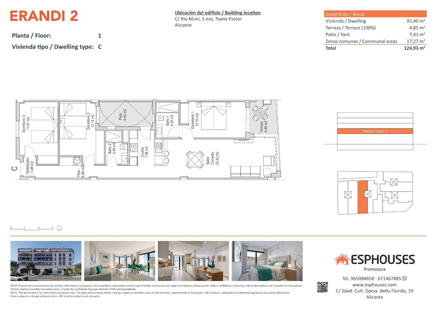 Šis jaunbūves dzīvoklis atrodas pirmajā stāvā ēkā ERANDI 2 un piedāvā 95,40 m² lielu kopējo platību. Tā plānojums apvieno komfortu, funkcionalitāti un ārtelpas, tostarp 4,85 m² lielu terasi un 7,41 m² lielu pagalmu — lieliski piemērots Vidusjūras klimata baudīšanai.
