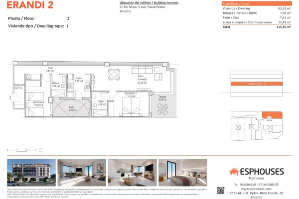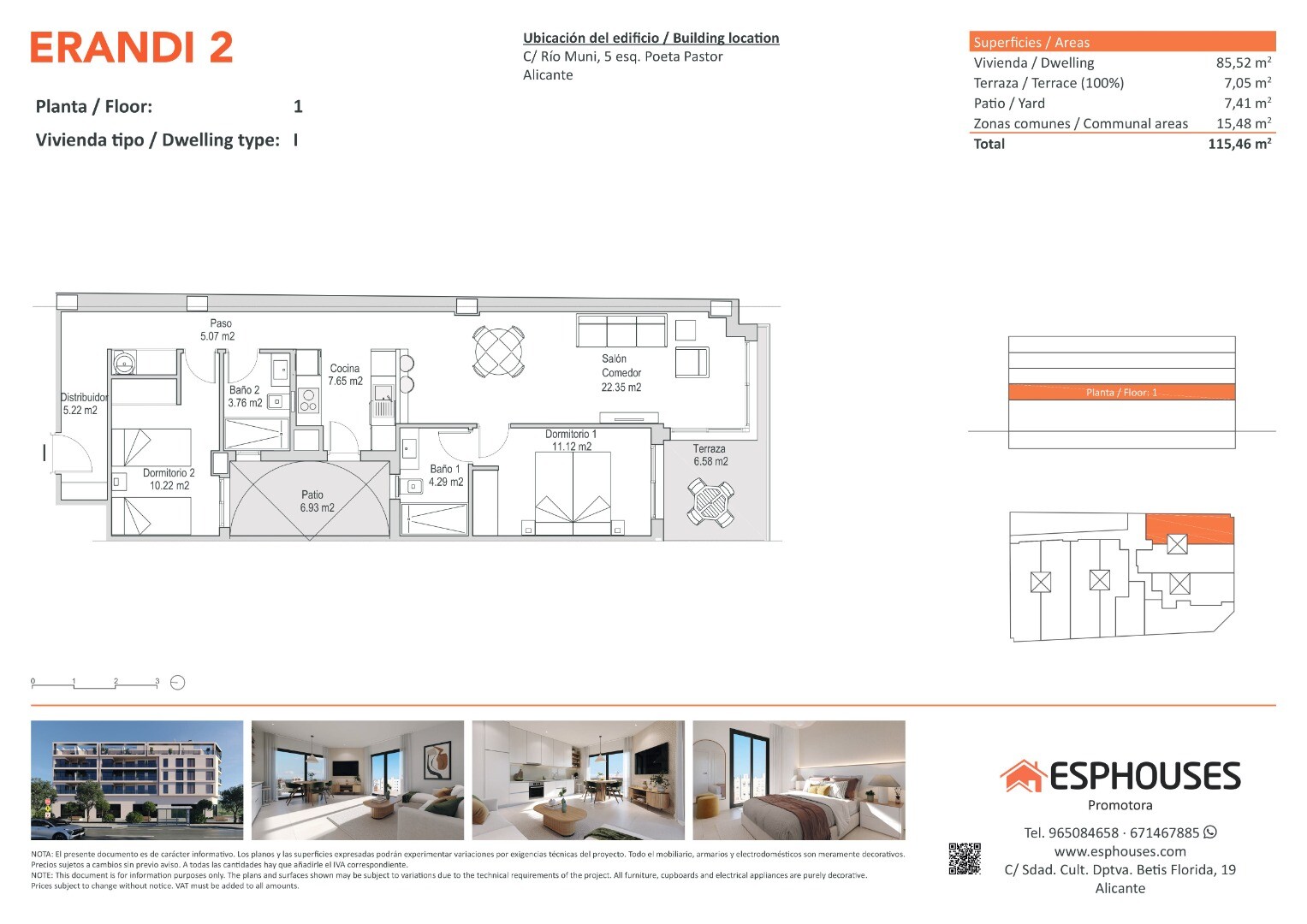 Šis jaunais dzīvoklis atrodas pirmajā stāvā ēkā ERANDI 2 un izceļas ar modernu dizainu, labi pārdomātu plānojumu un āra telpām, kas piemērotas, lai pilnvērtīgi izbaudītu Alikantes klimatu. Dzīvokļa kopējā platība ir 85,52 m², tas ietver divas guļamistabas ar iebūvētajiem skapjiem, divas pilnībā aprīkotas vannas istabas, viesistabu ar ēdamzonu un at...