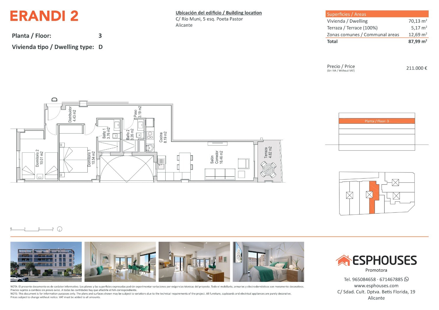 Šis jaunuzceltais dzīvoklis trešajā stāvā, ēkā ERANDI 2, izceļas ar mūsdienīgu un funkcionālu dizainu, augstas kvalitātes apdari un izcilu atrašanās vietu La Floridas rajonā — vienā no vislabāk savienotajiem un pieprasītākajiem rajoniem Alikantē.
