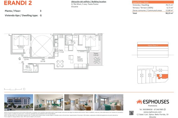Šis jaunais dzīvoklis atrodas trešajā stāvā ēkā ERANDI 2 un piedāvā mūsdienīgu, funkcionālu plānojumu ar lielisku dienvidu orientāciju, nodrošinot dabīgu gaismu visas dienas garumā. Atrašanās vieta – La Florida, viena no pazīstamākajām un vislabāk savienotajām Alikantes apkaimēm.