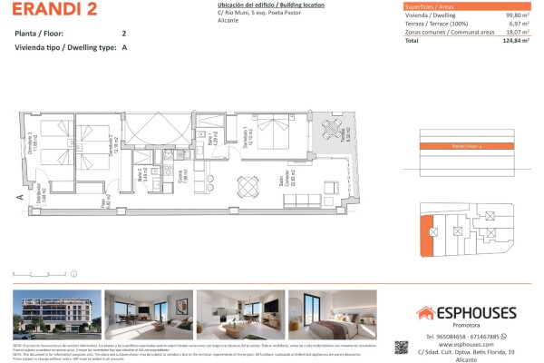 Atklājiet šo ekskluzīvo jaunbūves dzīvokli, kas atrodas ēkas ERANDI 2 otrajā stāvā, ikoniskajā La Floridas rajonā – vienā no dzīvākajiem un vislabāk savienotajiem Alikantes rajoniem. Dzīvoklis ar kopējo platību 99,80 m² piedāvā trīs guļamistabas ar iebūvētām skapjiem, divas vannas istabas, plašu viesistabu ar atvērta tipa virtuvi un patīkamu 6,97 m...
