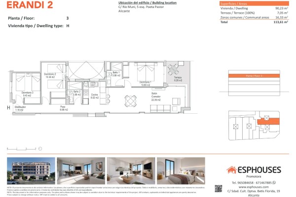 Šis jaunais dzīvoklis atrodas ERANDI 2 ēkas trešajā stāvā un piedāvā kopējo platību 90,23 m². Mūsdienīgs un funkcionāls plānojums, kā arī lieliska orientācija uz dienvidiem padara to par lielisku izvēli slavenajā La Florida rajonā – vienā no vislabāk savienotajām Alikantes daļām.