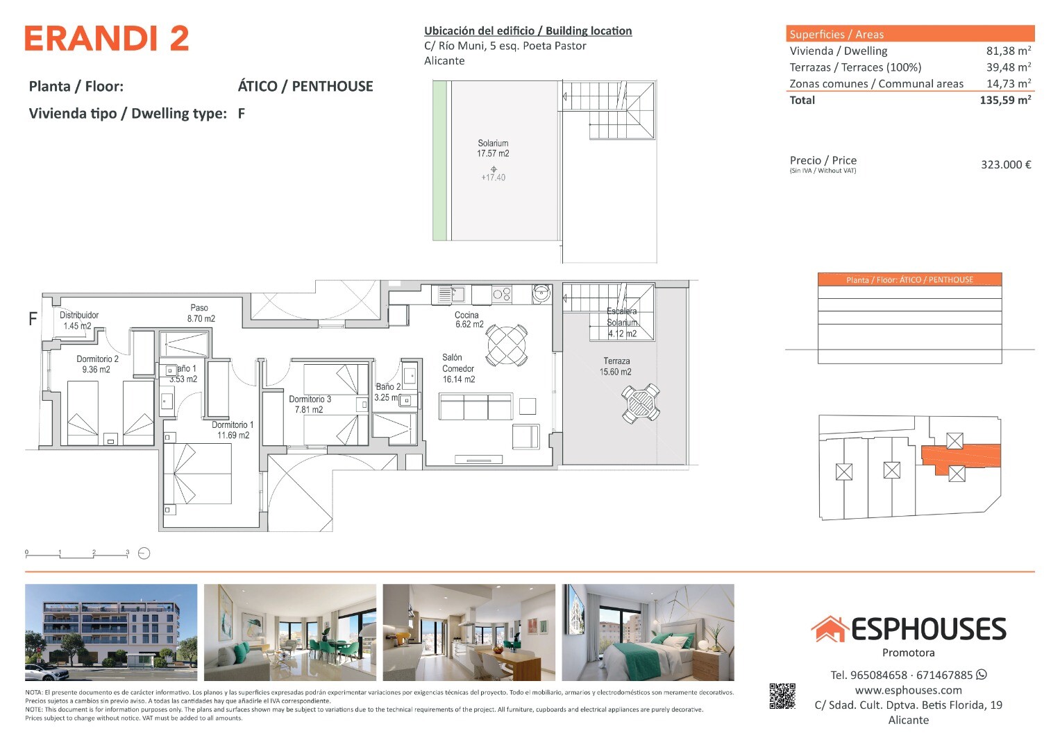 Šis jaunbūves penthauss atrodas ceturtajā ERANDI 2 ēkas stāvā, ikoniskajā La Florida rajonā – vienā no vislabāk savienotajiem un attīstītākajiem Alikantes apvidiem. Dzīvokļa kopējā platība ir 81,38 m², ietverot trīs guļamistabas ar iebūvētajiem skapjiem, divas pilnas vannas istabas un plašu viesistabas un virtuves apvienojumu mūsdienīgā un funkcion...