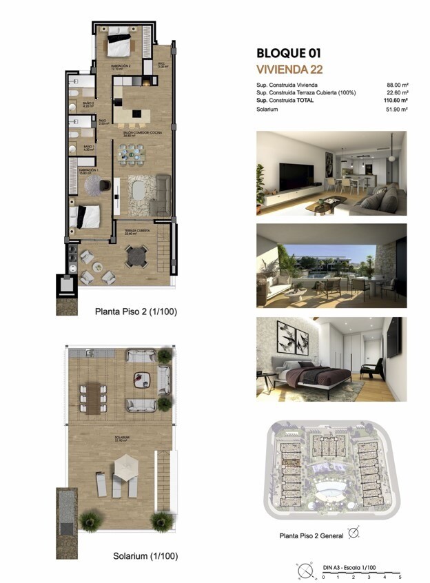 Ekskluzīvi dzīvokļi Font del Llop golfa kūrortā ar divām vai trim guļamistabām, katrā no tām ir divas vannas istabas, pazemes noliktava un autostāvvieta. Papildus ir pieejamas 35 autostāvvietas par 15 000 eiro. Pēc dzīvokļa iegādes tam tiek piemērots 10 % PVN, bet pēc tam — 21 % PVN. Dzīvokļos ir uzstādīta karstā/aukstā klimata kontrole, izmantojot... uz jumta uzstādītu siltumsūkni. Klimata kontrolei ir gaisa zonas iepriekšēja uzstādīšana, un to var iegādāties pēc izvēles. Rezidencē ir divi koplietošanas peldbaseini un divas džakuzi, bērnu rotaļu laukums, velosipēdu novietne, petanka laukumi un koplietošanas kopstrādes telpa.