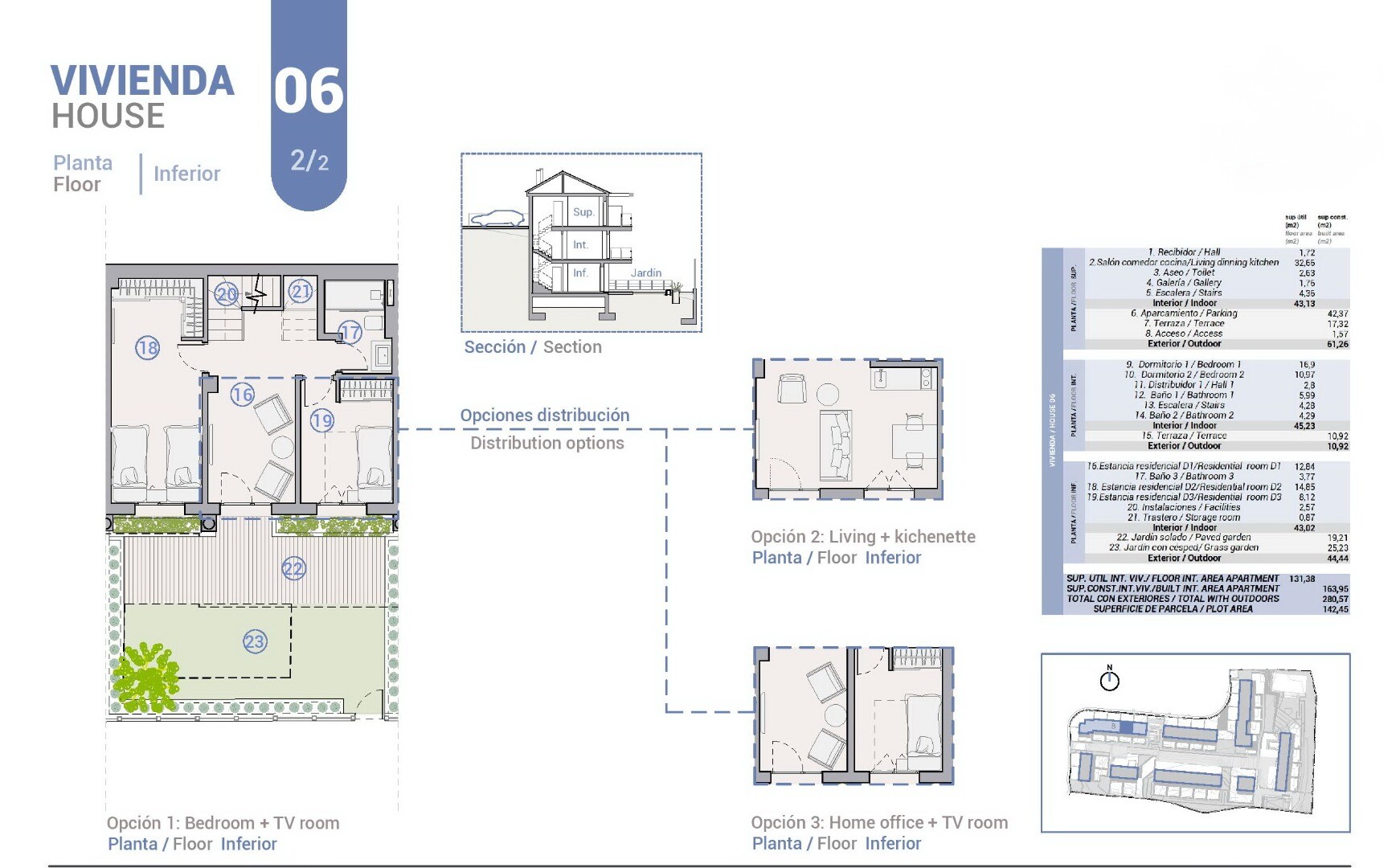 Mūsdienīga dizaina un būvniecības projekts, kurā varat baudīt klimatu, perfektu sauli, lieliskus skatus uz Benidormas un Albiras līčiem un veselīgu dzīvesveidu. Netālu no visiem La Nucia pilsētas pakalpojumiem un sporta veidiem. Māju izmēri un to konfigurācija padara tos ideāli piemērotus klientiem, kuriem nepieciešams vairāk vietas, kuri vēlas daļ...u no sava mājokļa padarīt rentablu, kamēr viņiem joprojām ir savs mājoklis, vai kuri vēlas vietu spēlēm, biroju vai telpas bērniem, jaunākajiem mājā. Mājām ir vairākas terases ar skatu, autostāvvieta divām automašīnām un dārzs ar tiešu piekļuvi koplietošanas telpām. Daudzās no tām ir arī solārijs, kur var baudīt vakarus ārā ar draugiem.