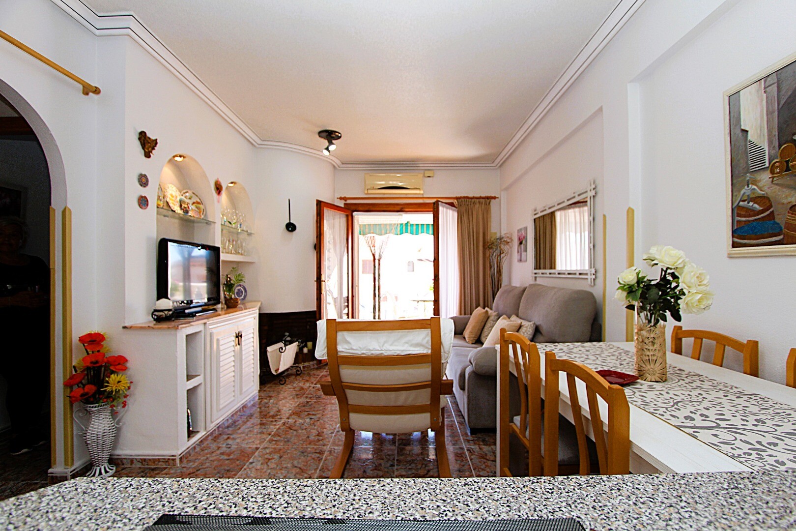 Vai vari iedomāties dzīvi mierīgā vidē, kurā tev ir iespēja baudīt Vidusjūras sauli visa gada garumā? Piedāvājam tev šo mājīgo dzīvokli 1. stāvā, kas atrodas El Moncayo dzīvojamajā rajonā Guardamar del Segura, Alikantes provincē, Spānijā. Īpašums ir ļoti labi uzturēts un ideālā stāvoklī, lai tajā varētu uzreiz ievākties, tāpēc tev nebūs jāuztraucas... par remontdarbiem. Dzīvoklī ir divas guļamistabas, viena vannas istaba, terase pie ieejas ar dienvidu orientāciju un plaša terase augšējā stāvā, kurā vari atpūsties bez jebkādiem traucējumiem. Apbūves rajonā ir 2 koplietošanas peldbaseini, kas ļaus Jums baudīt patīkamus brīžus karstākajās dienās. Slavenās Guardamar del Segura pludmales atrodas aptuveni 5 minūšu brauciena attālumā ar automašīnu. Sazinieties ar mums, lai saņemtu vairāk informācijas un noorganizētu apmeklējumu! Mēs ar prieku Jums palīdzēsim!