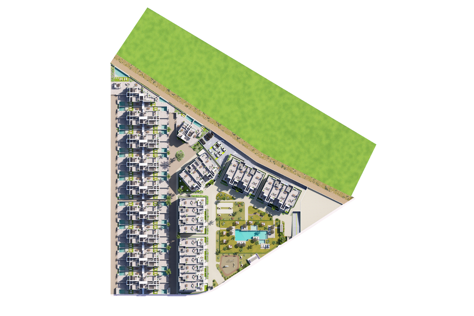 Komplekss piedāvā lieliskas koplietošanas zonas ar lielu centrālo pludmales tipa baseinu, Bali gultām, džakuzi zonu, bērnu baseinu, diviem pétanque laukumiem, bērnu rotaļu laukumu, sporta zāli un saunas/spa zonu.