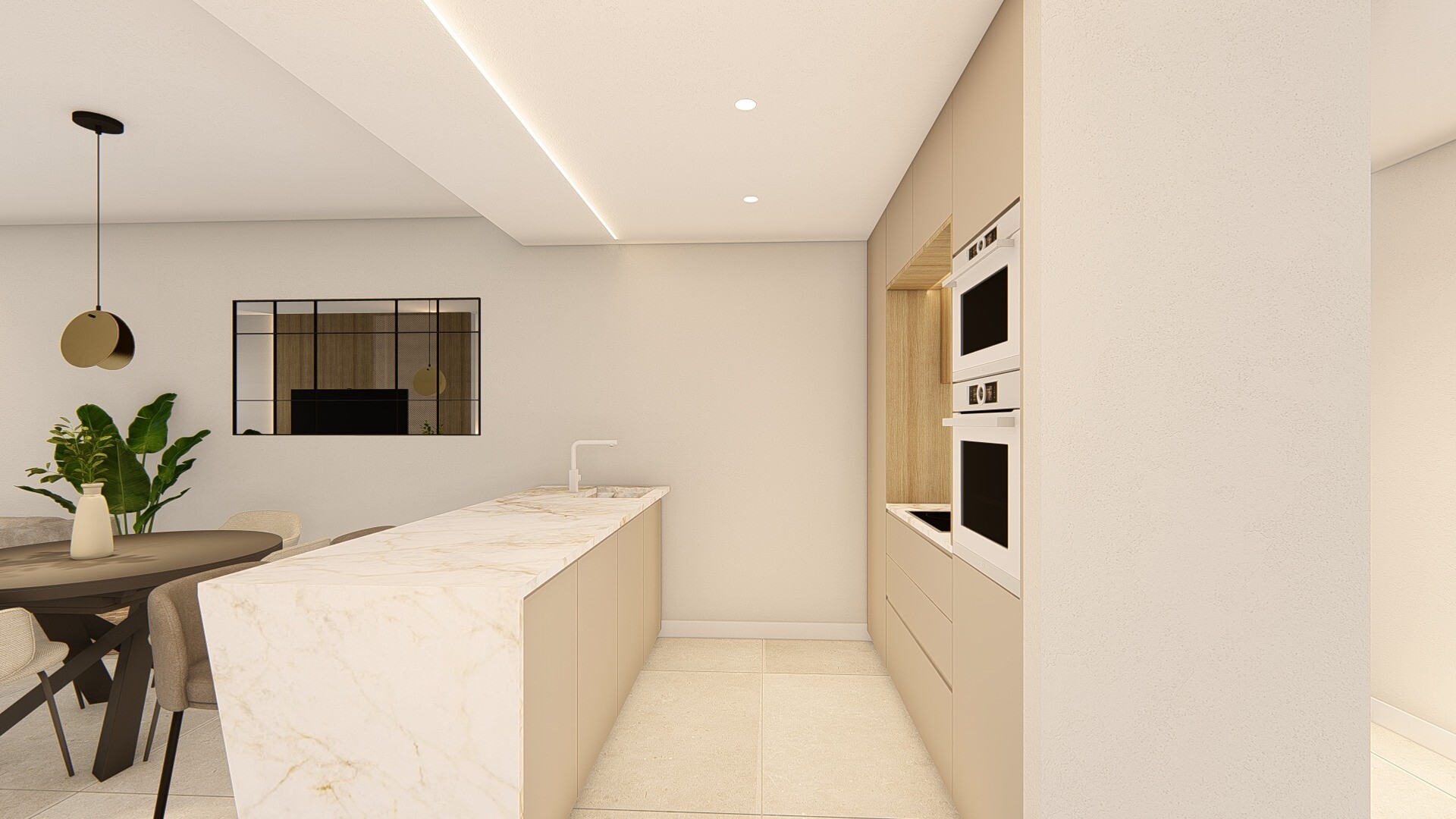 Īpašuma kopējā platība ir 85 m², un tas sastāv no trim guļamistabām ar i...ebūvētiem skapjiem, divām pilnām vannas istabām un plašas viesistabas ar ēdamzonu un atvērtā plānojuma virtuvi, kas ir pilnībā mēbelēta un aprīkota ar sadzīves tehniku.