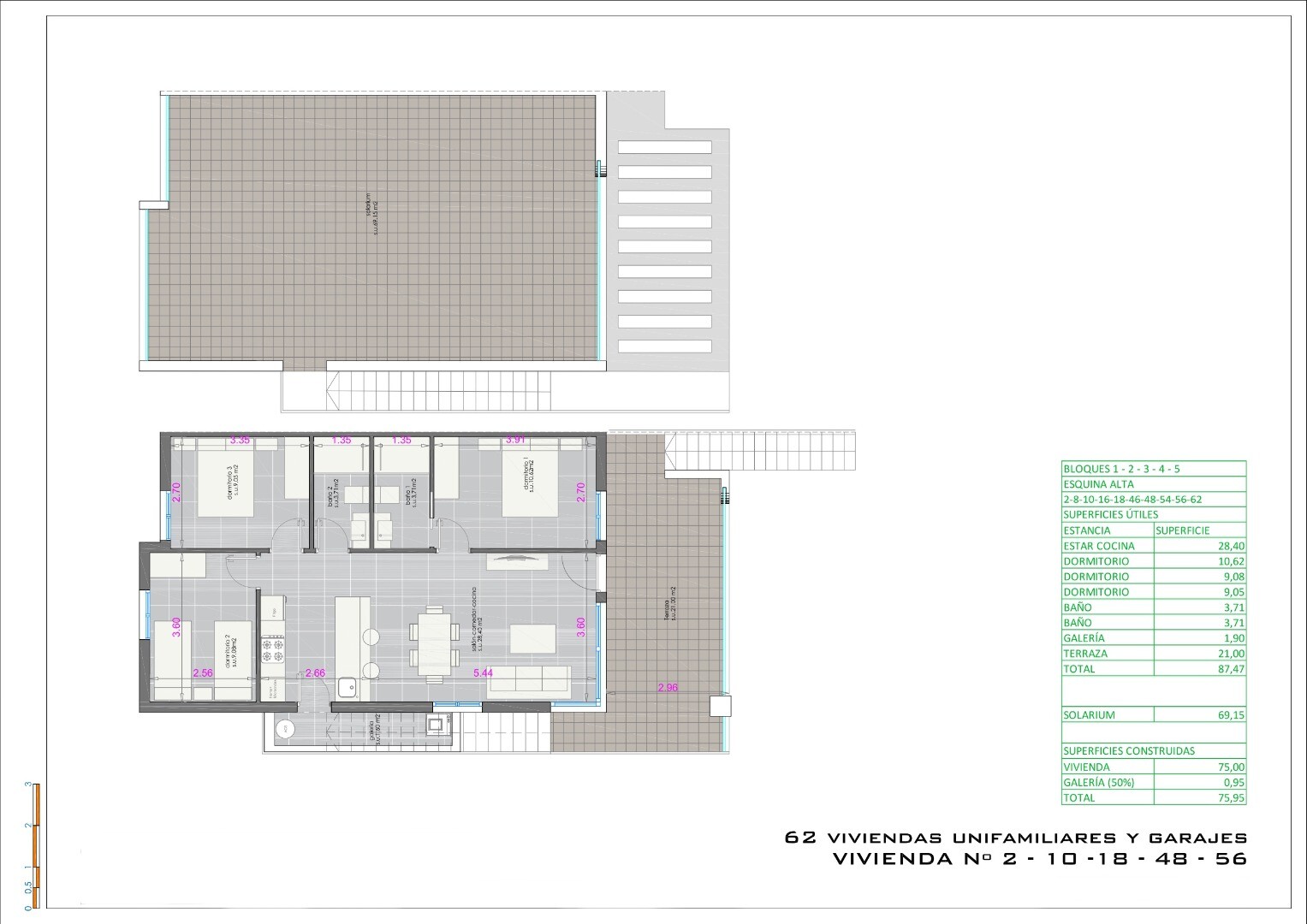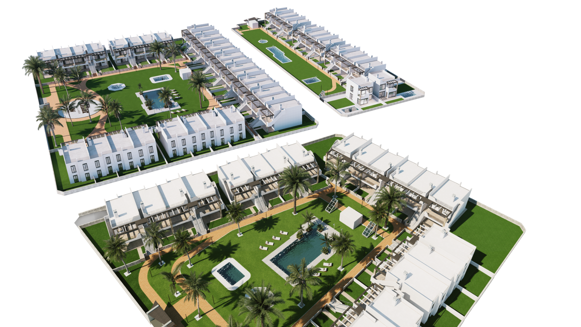 Piecu bloku dzīvojamais komplekss ar kopumā 62 dzīvokļiem. Pirmajā stāvā ir dārzs, bet otrajā stāvā ir privāta jumta terase ar sagatavotu aprīkojumu āra virtuvei. Kompleksā ir skaists koplietošanas dārzs un peldbaseins, un pagrabstāvā ir arī fitnesa zāle. Pilar de la Horadada ir tipiska Spānijas pilsēta, kas saglabā rosību visu gadu. Visas iespējam...ās ērtības ir pastaigas attālumā. Gadu gaitā tā ir izaugusi par starptautisku kopienu, pateicoties tās vieglajai pieejamībai un jūras un golfa laukumu tuvumam. Dzīvokļi tiek piegādāti ar pilnībā aprīkotām vannas istabām, iepriekš uzstādītām ierīcēm virtuvē, iepriekš uzstādītu gaisa kondicionēšanu un pazemes autostāvvietu. Mursijas un Alikantes lidostas atrodas attiecīgi aptuveni 30 minūšu brauciena attālumā no Mursijas un 50 minūšu brauciena attālumā no Alikantes.