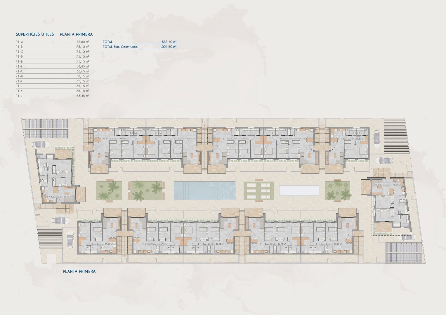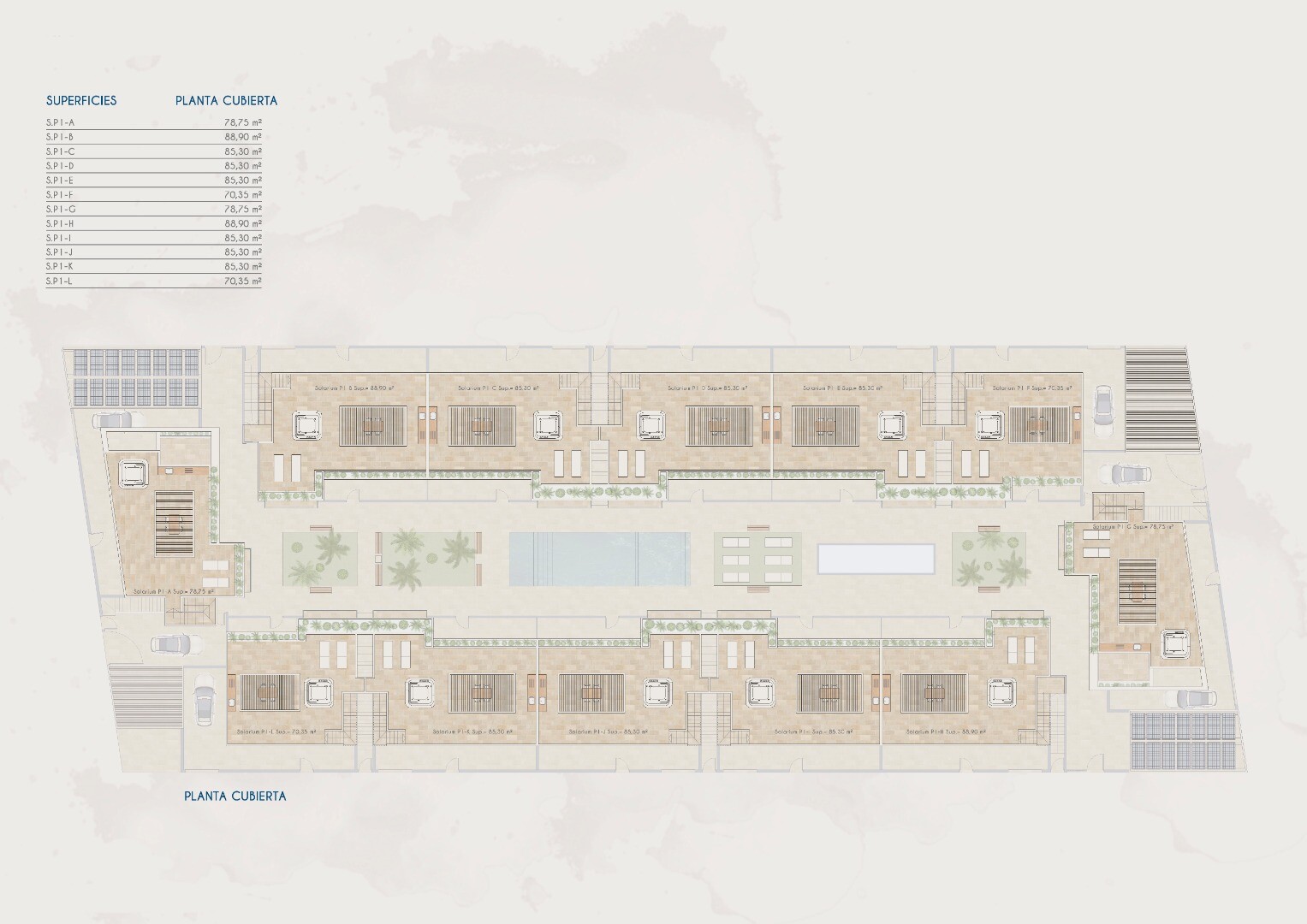 Jauns dzīvojamais komplekss ar dzīvokļiem pirmajā stāvā ar terasēm priekšpusē un aizmugurē, kā arī dzīvokļiem otrajā stāvā ar jumta terasi, pieejami ar 2 vai 3 guļamistabām. Dzīvokļos ir pilnībā aprīkotas vannas istabas un virtuve ar ierīcēm. Ir uzstādīta arī gaisa kondicionēšanas sistēma. Solārijā tiek uzstādīts grils, kā arī pergola virs pastipri...