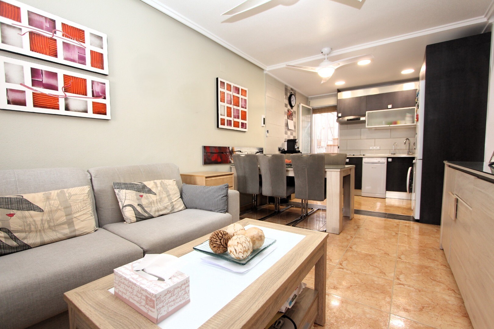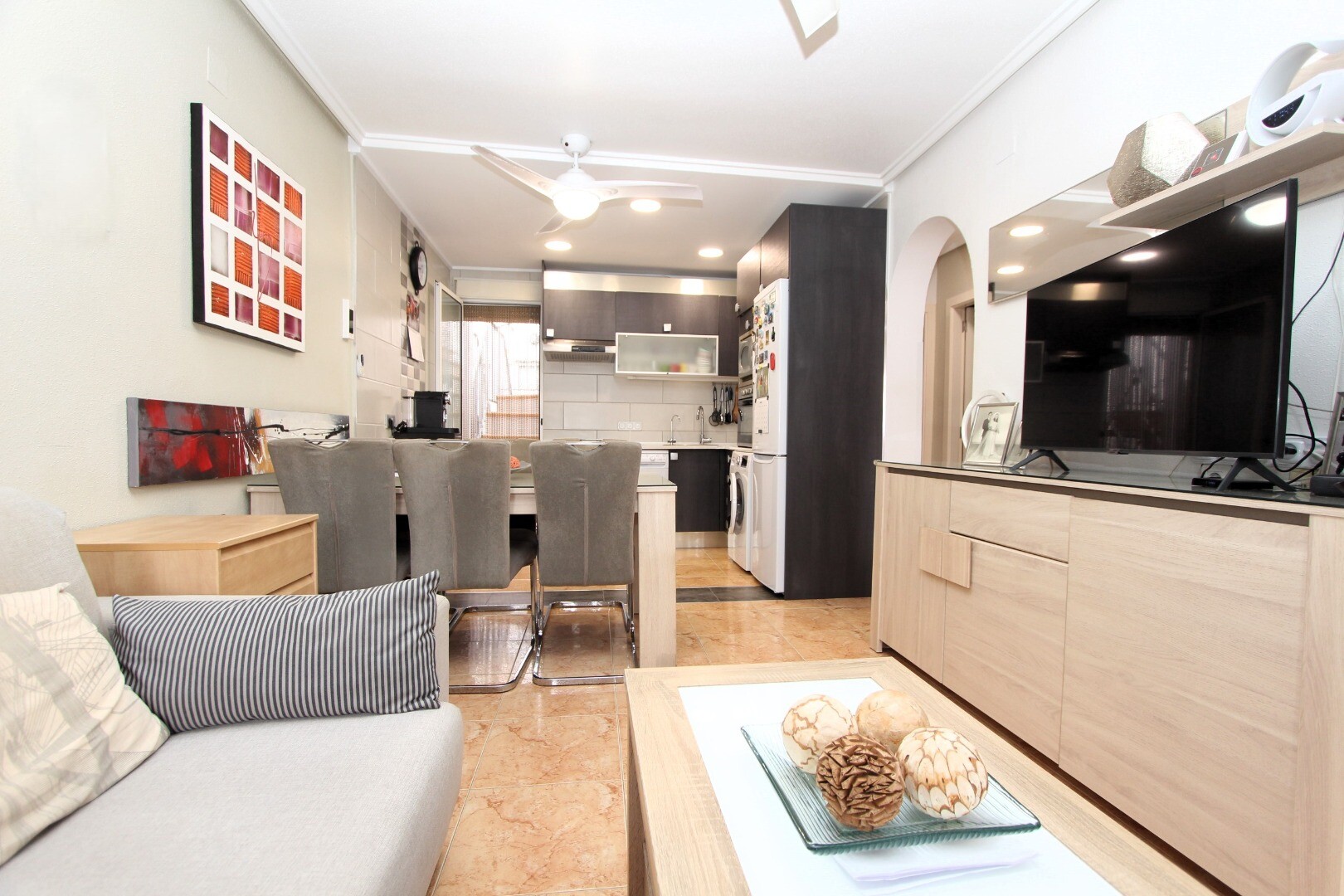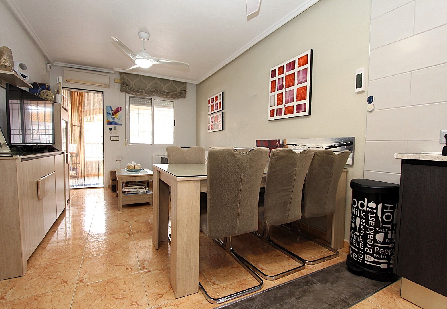 Vai vari iedomāties dzīvot klusā vietā, kurā varētu baudīt Vidusjūras sauli visa gada garumā? Piedāvājam šo divstāvu rindu māju pirmajā stāvā, kas atrodas Altos del Limonar dzīvojamajā rajonā Torrevieja. Dzīvoklī ir divas guļamistabas, viena vannas istaba, terase ar austrumu orientāciju un plaša privāta terase augšējā stāvā. Īpašumā ir veikta virtu...ves un vannas istabas renovācija, izmantojot augstas kvalitātes materiālus. Apbūves rajons ir slēgts, tajā ir daudzfunkcionāls laukums un plašs kopīgs baseins, kurā varēsiet pavadīt patīkamas brīžus siltajās vasaras dienās. Tirdzniecības centrs Habaneras atrodas tikai 3 minūšu brauciena attālumā ar auto, bet slavenās pludmales Playas del Cura, Los Locos un Los Naúfragos – apmēram 10 minūšu brauciena attālumā. Torreviejas Universitātes slimnīca atrodas aptuveni 15 minūšu brauciena attālumā, bet Alikantes starptautiskā lidosta, no kuras ir tieši lidojumi uz galvenajiem Eiropas galamērķiem, – aptuveni 40 minūšu brauciena attālumā. Sazinieties ar mums, lai saņemtu vairāk informācijas!