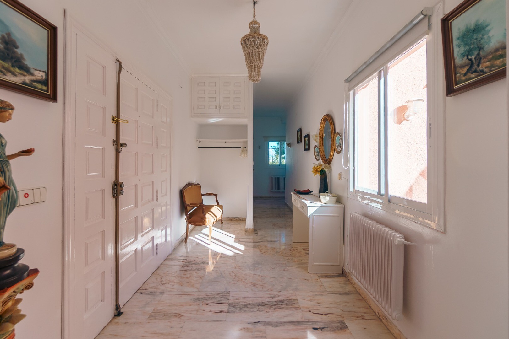 Galvenā māja ir izvietota vienā stāvā un piedāvā divas plašas guļamistabas, abas ar vannas istabām, kā arī viesu tualeti. Tajā ir arī gaiša dzīvojamā-ēdamistaba, neatkarīga virtuve un birojs, ko var viegli pārveidot par trešo guļamistabu. Īpašumā ietilpst garāža ar veļas mazgātavu, vairākas noliktavas telpas un patīkama iekšpagalma telpa. Turklāt i...r plaša dārza zona ar lielu potenciālu pārveidoties par skaistu āra dzīvojamo telpu.