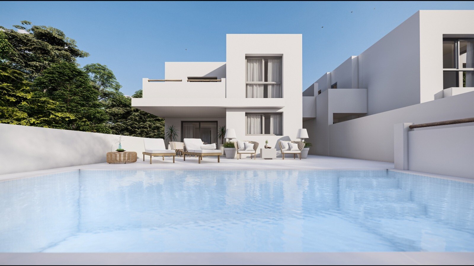Dodieties ārā uz savu privāto oāzi: 7x3 m peldbaseinu, ko ieskauj dārzs un terase. Automātiskās elektriskās žalūzijas, augstas efektivitātes gaisa kondicionēšana ar slēptiem kanāliem un apsildāmās grīdas vannas istabās nodrošina komfortu visu gadu. Sagatavotās instalācijas saules paneļiem un elektroauto uzlādei izceļ īpašuma videi draudzīgo dizainu.