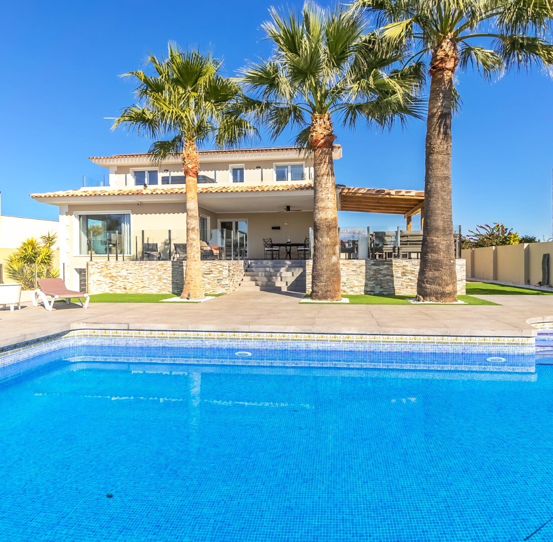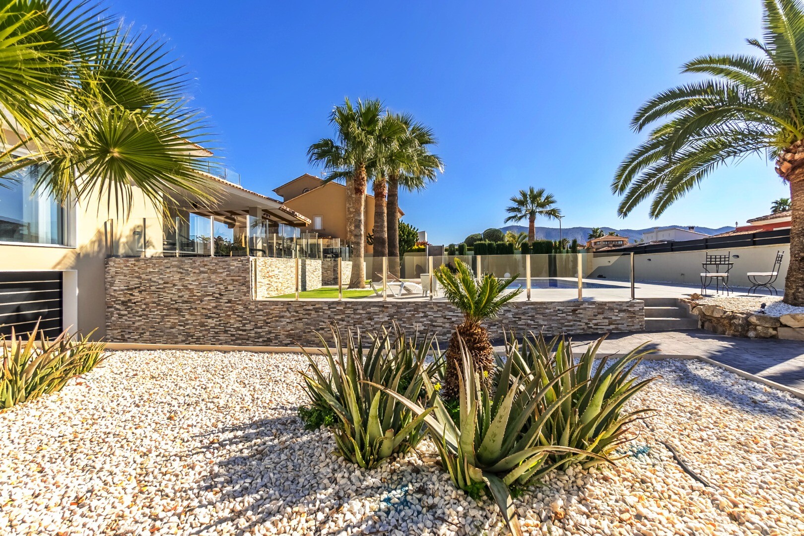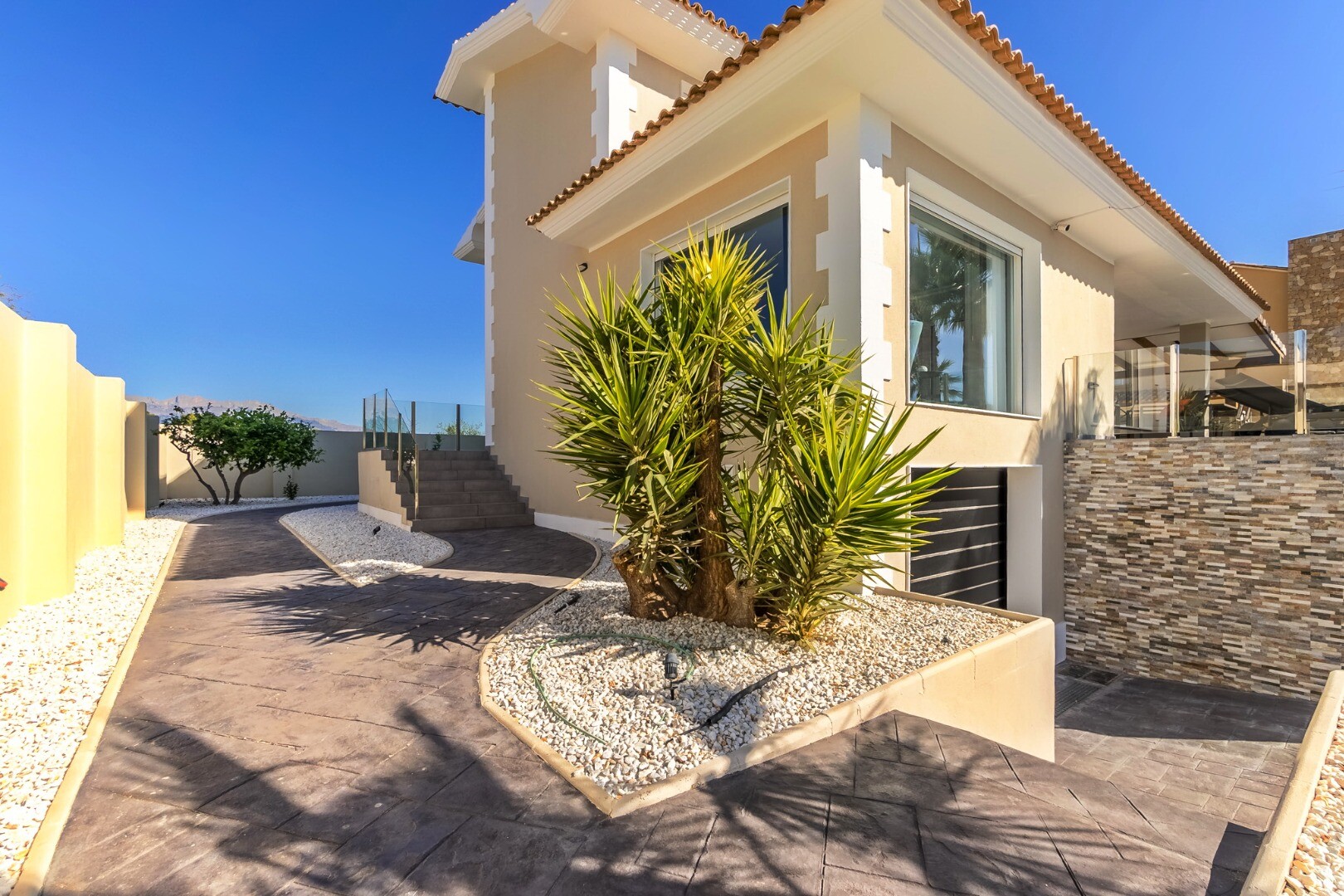 Pilnībā renovēta 2023. gadā, šī modernā 350 m² villa atrodas uz privāta 1250 m² zemes gabala klusā dzīvojamajā rajonā, tikai 10 minūšu attālumā no pludmales un 15 minūšu attālumā no Benidormas. Pārdod pilnībā mēbelētu un gatavu dzīvošanai.