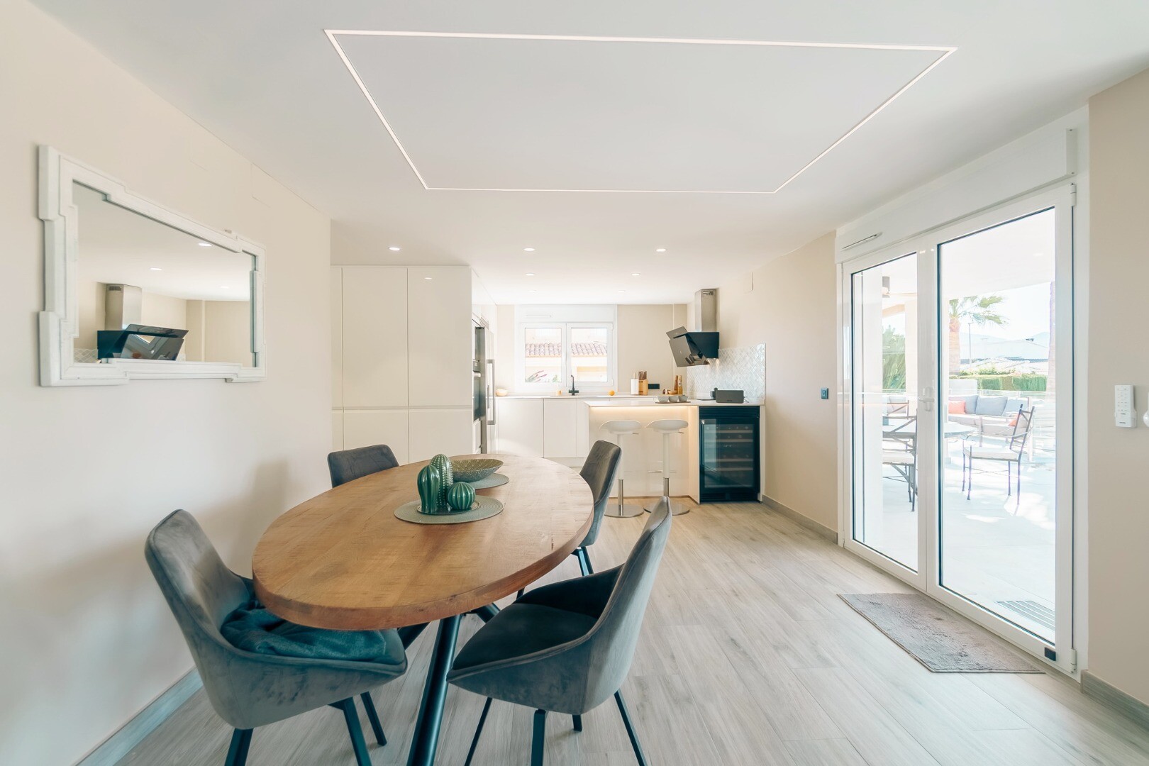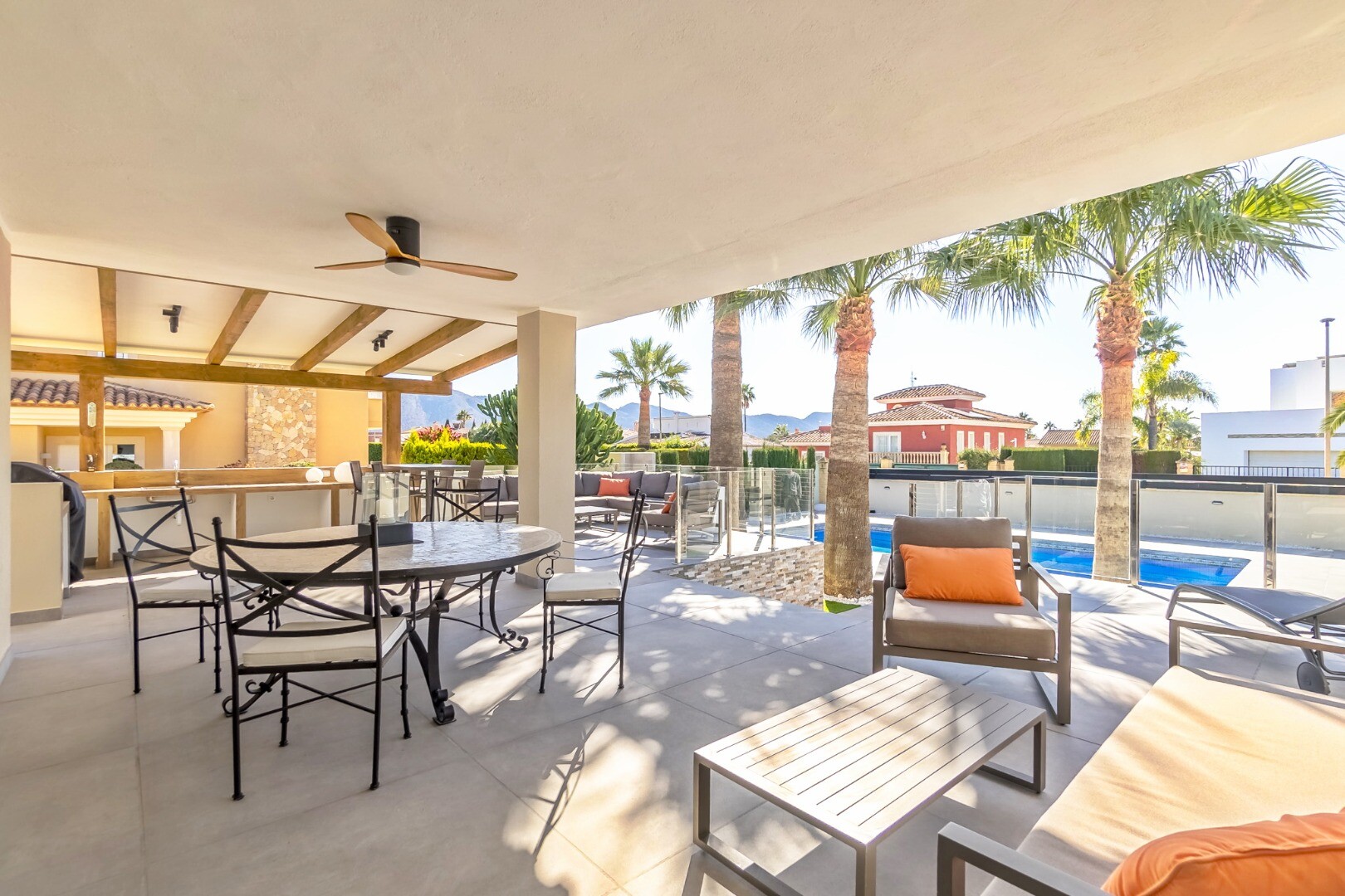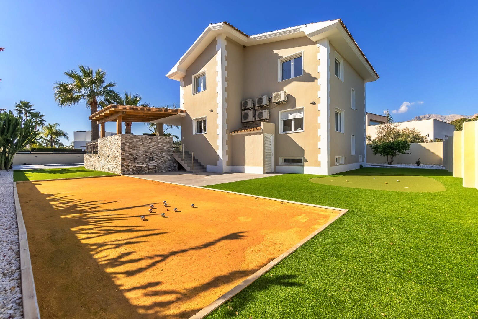 Pilnībā renovēta 2023. gadā, šī modernā 350 m² villa atrodas uz privāta 1250 m² zemes gabala klusā dzīvojamajā rajonā, tikai 10 minūšu attālumā no pludmales un 15 minūšu attālumā no Benidormas. Pārdod pilnībā mēbelētu un gatavu dzīvošanai.
