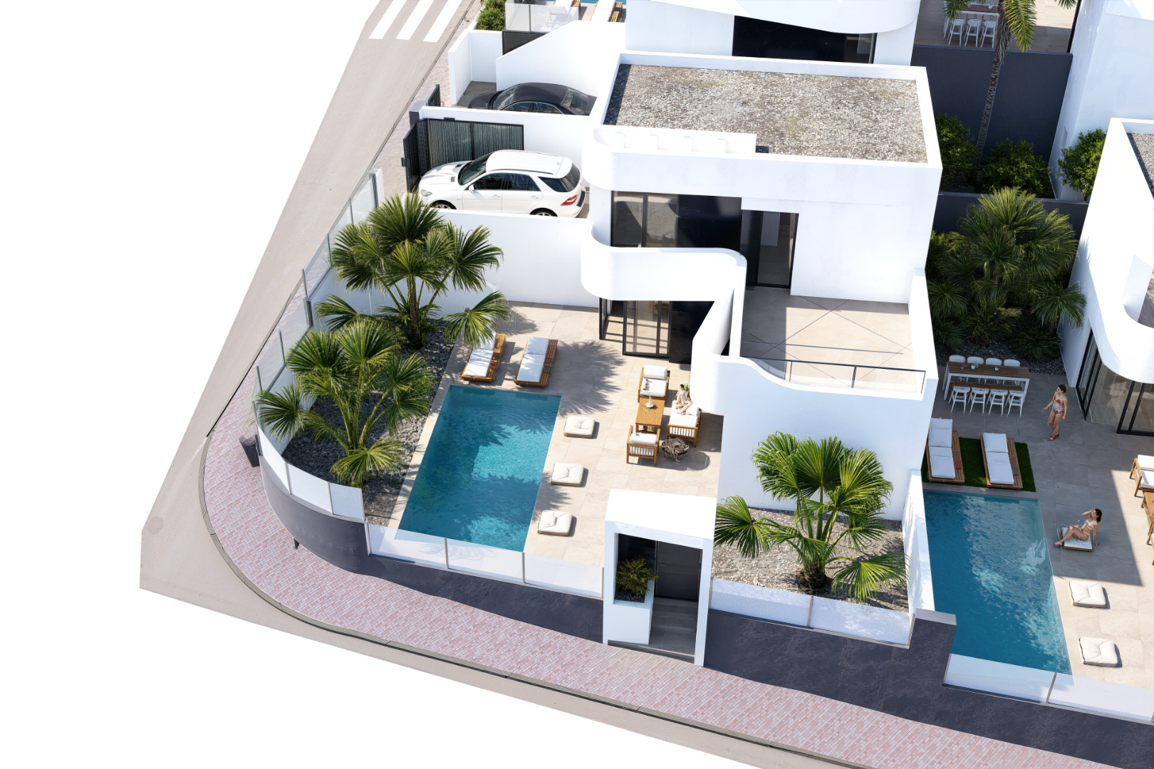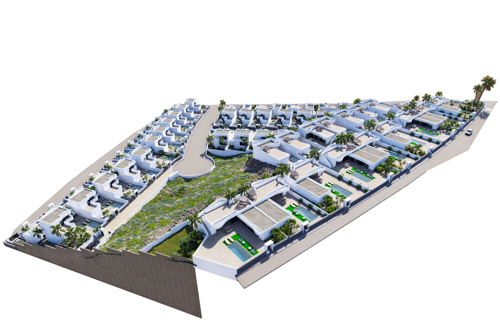 Dažādās vietās tiek piedāvāti trīs māju modeļi. Mājām uz lielākiem zemes gabaliem ir 7x3 m peldbaseins. Mazākajām ir 6x3 m baseins. Mājām uz lielākiem zemes gabaliem standarta aprīkojumā ir pagrabs, lai gan lielākajai daļai tas ir neobligāts. Mājās ir iepriekš uzstādīta gaisa kondicionēšana, izmantojot kanālus.