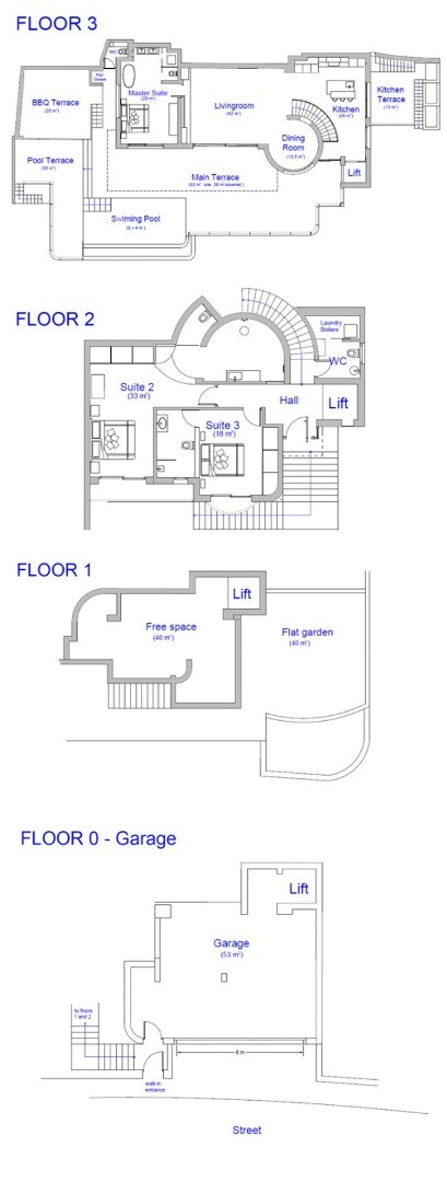 Īpašums atrodas uz 1300 m² liela privāta zemes gabala ar 360 m² lielu apbūvētu platību, un tas ir sadalīts četros līmeņos, rūpīgi proj...ektēts, lai maksimāli palielinātu privātumu, dabisko apgaismojumu un nemanāmu integrāciju apkārtējā ainavā.