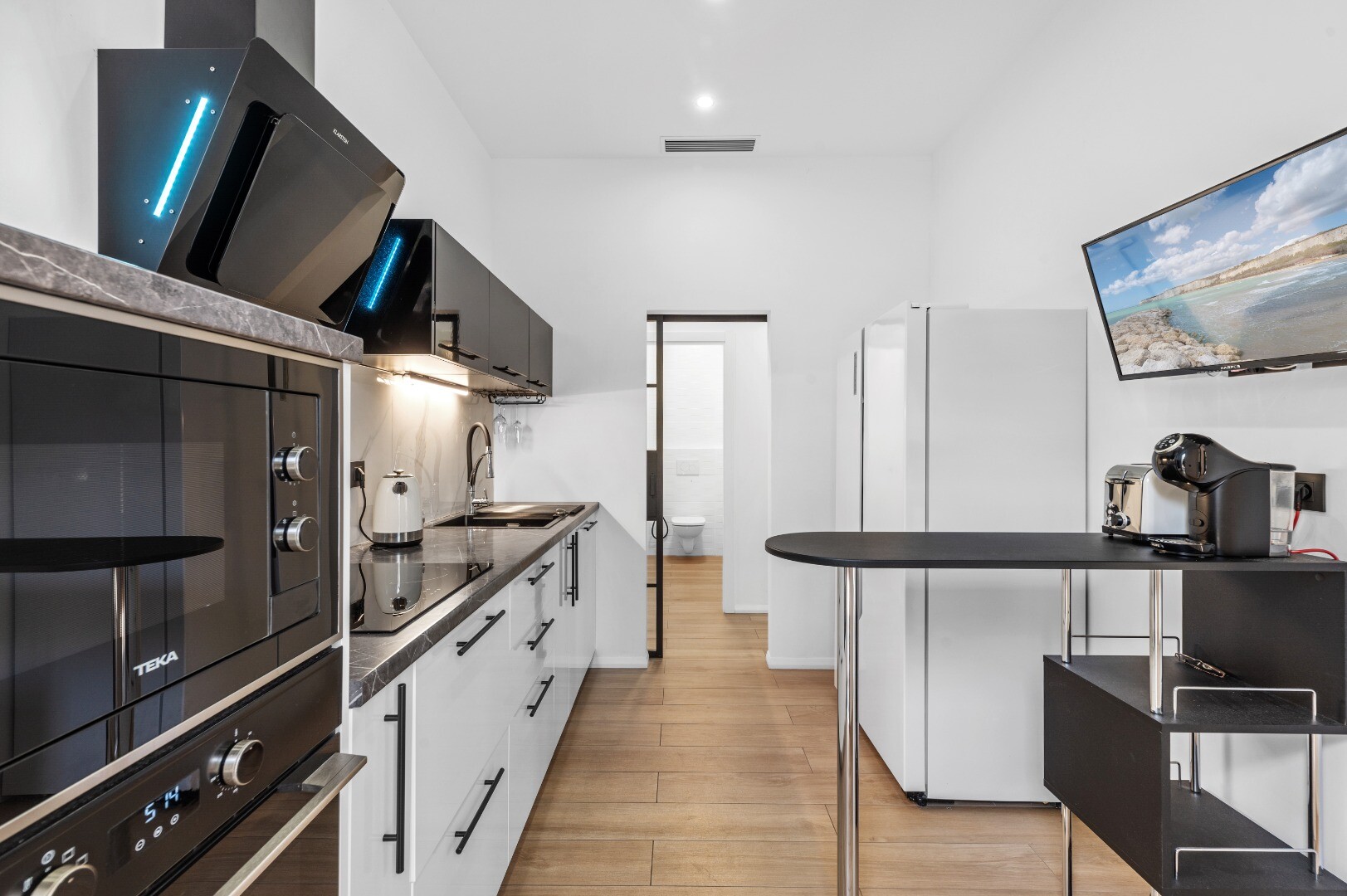 Ārpusē privātais dārzs aicina baudīt dzīvi svaigā gaisā – tajā ir rūpīgi izveidota grila zona, stilīgs sālsūdens baseins un ekskluzīva sauna, kas rada patiesas relaksācijas sajūtu. Viss izvietots mierīgā un privātā vidē, kas nodrošina augstu dzīves kvalitāti.