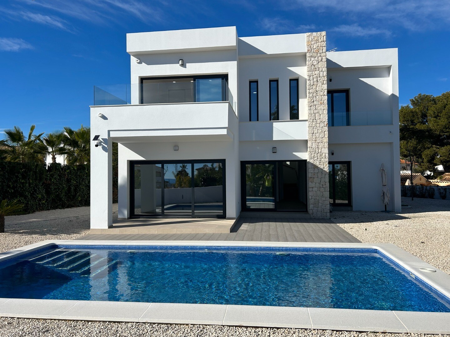 Pārdošanā iespaidīga moderna dizaina villa Benisā, kas atrodas ekskluzīvajā La Fustera rajonā, labi iekārtotā un ļoti klusā dzīvojamajā zonā, strupceļā, nodrošinot maksimālu privātumu un mieru. Īpašums atrodas tikai 1,2 km attālumā no La Fustera pludmales (14 minūšu gājiena attālumā) un netālu no visiem svarīgākajiem pakalpojumiem, piemēram, lielve...ikaliem, restorāniem un autobusu pieturas, kā arī tuvējām Morairas un Kalpes pilsētām.