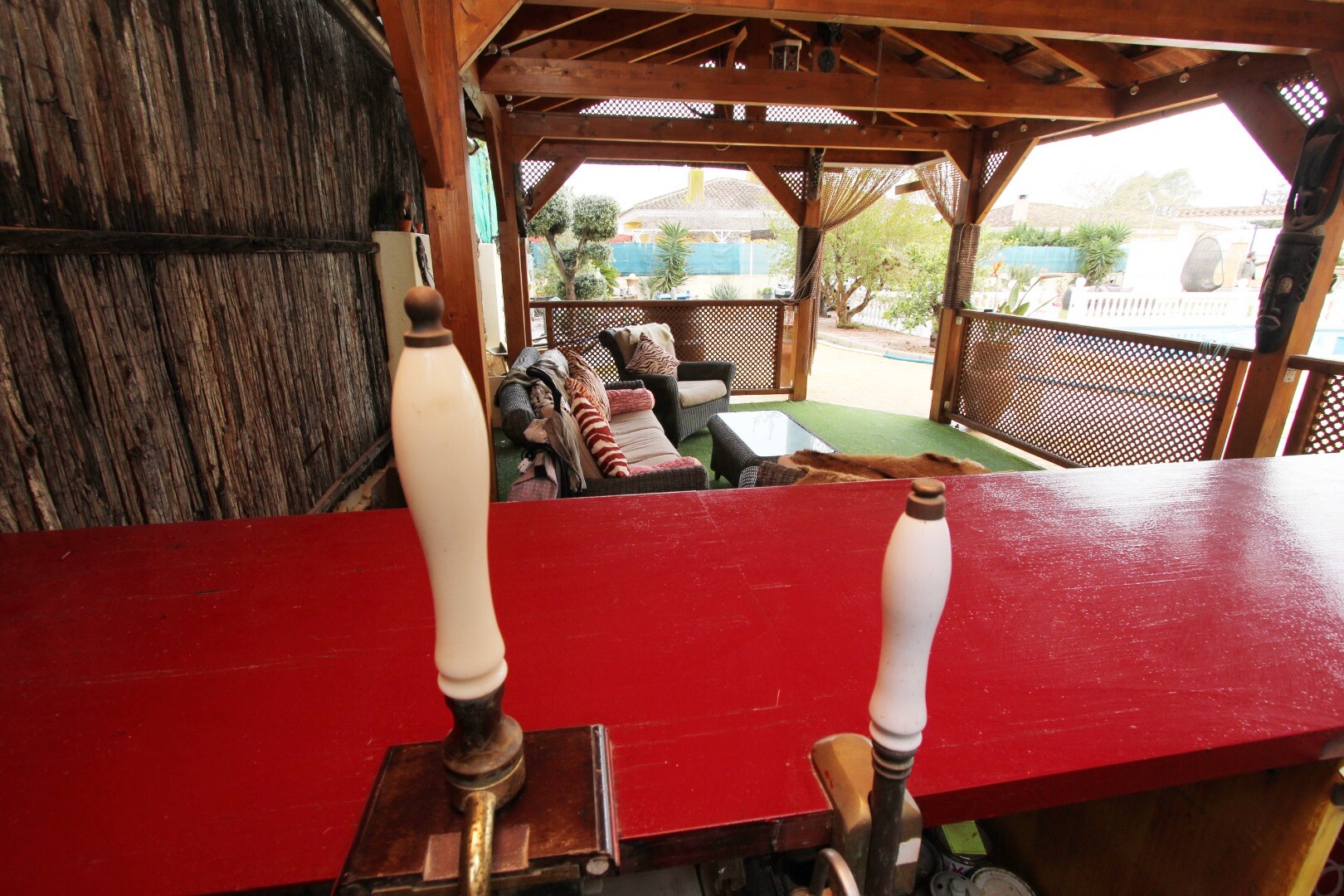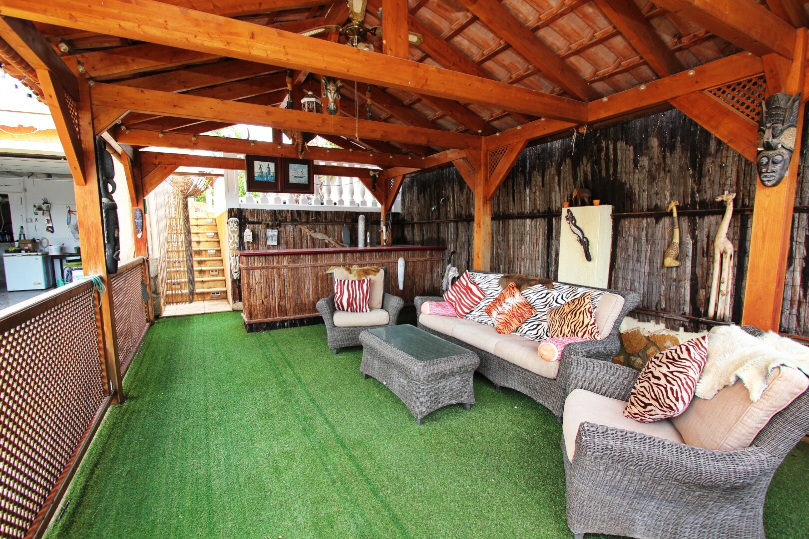 *Koka mājiņas atpūtas zona ar bāru