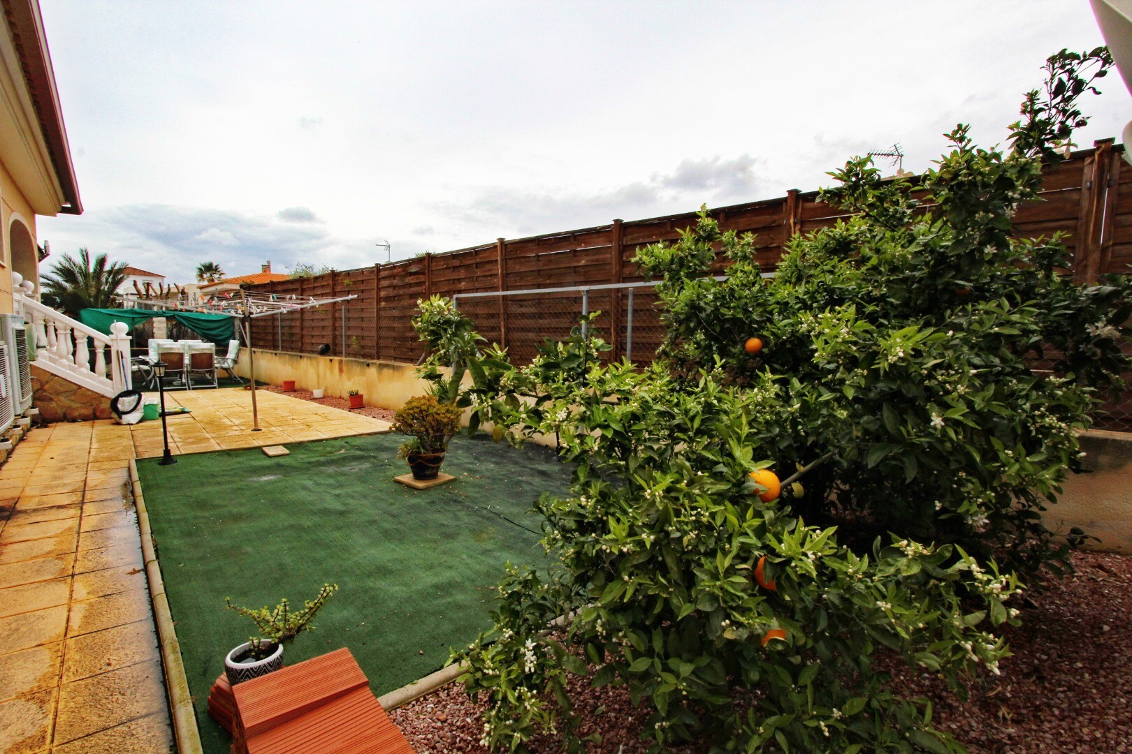 Īpašuma aizmugurē atrodas papildu āra telpa, tostarp augļu koki, žāvēšanas zona un neliela veranda — ideāli piemērota ikdienas praktiskumam apvienojumā ar relaksējošu dzīvi brīvā dabā.