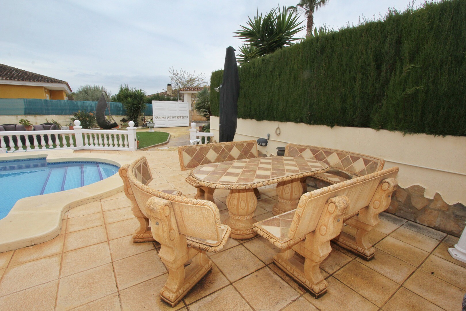 Īpašums atrodas uz liela zemes gabala ar augļu kokiem, vairākām atpūtas zonām, kā arī garāžu ...un nojumi automašīnai, un tas ir gatavs tūlītējai dzīvošanai un baudīšanai.