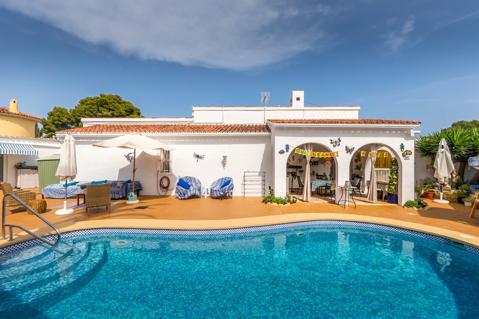 Āra zona ir īpaši viesmīlīga un funkcionāla, un tajā ir privāts baseins, bārbekjū, jauka lievenis un labi kopts dārzs, kuram nav nepieciešama apkope.