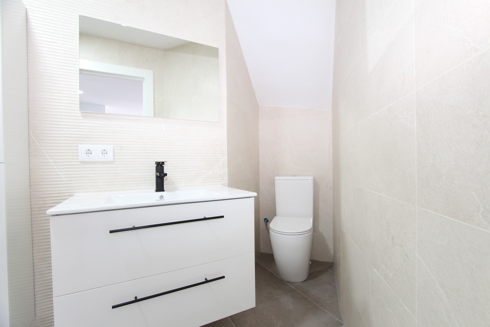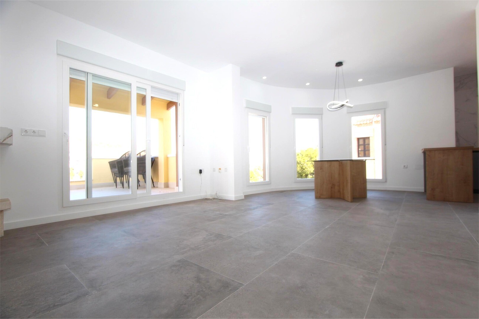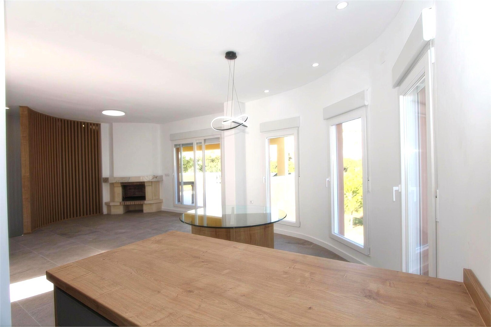 Ieejot dzīvoklī, pirmais, ko mēs ieraugām, ir plaša un gaisīga viesistaba-arēdienu zona ar lieliem logiem un piekļuvi plašai daļēji aizsegta terasei, no kuras paveras lielisks skats un nodrošināta pilnīga privātums.Virtuve, atvērtā stila, ir pilnībā aprīkota ar augstiem un zemiem skapjiem, kā arī kvalitatīviem sadzīves tehnikas līdzekļiem. Tā lieli...ski saplūst ar ēdamzonu, kur izceļas mājīga kamīna, kas piešķir telpai siltumu.Tajā pašā stāvā atrodas arī praktisks skapis un viesu tualete.Atpūtas zona atrodas apakšējā stāvā, uz kuru var nokļūt pa ērtām kāpnēm. Tur mēs atrodam pilnu vannas istabu, viesu guļamistabu, vēl vienu guļamistabu ar privātu vannas istabu un plašo un elegantā galveno guļamistabu ar savu vannas istabu un garderobi.Katrā guļamistabā ir tieša piekļuve apakšējām terasēm, kur atrodas privātais baseins, lieliska vieta relaksācijai.